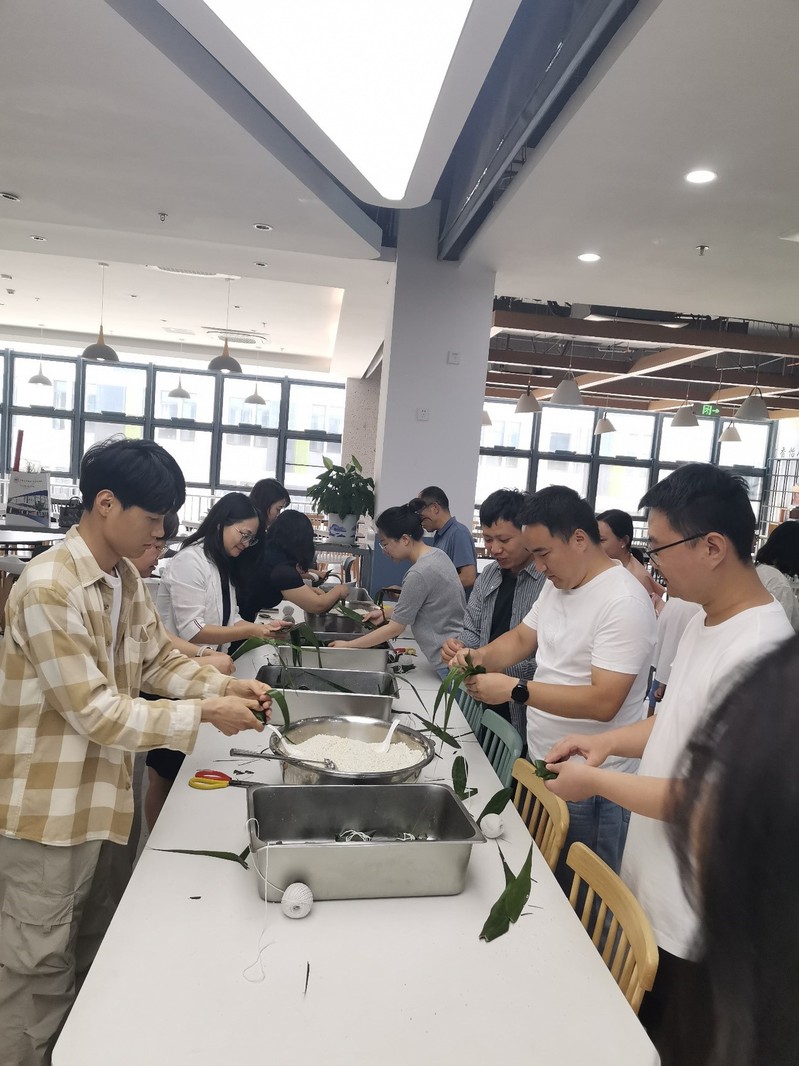 在“廉心粽”制作区域,教师们围在一起,分成若干小组,每组面前都摆放着糯米、粽叶、蜜枣等食材。大家纷纷动手尝试,从卷粽叶、填糯米、放馅料到捆扎成型,每一个步骤都学得认真仔细。虽然不少教师是第一次包粽子,但大家热情高涨,相互学习,分享端午节的由来和廉洁故事,不一会儿,一个个形状各异的粽子便呈现在眼前。有的粽子包裹得严实紧凑,棱角分明;有的则略显松散,形态可爱。教师们看着自己亲手包好的粽子,脸上洋溢着满足和喜悦的笑容。在清风手作体验区,学院工会准备了艾草、香囊等材料,老师们填充艾草,制作香囊,“驱邪扶正”。经过一个多小时的努力,教师们共包制了数百个粽子。大家品尝着自己亲手包制的“廉心粽”,潜移默化中强化了廉洁从教意识。