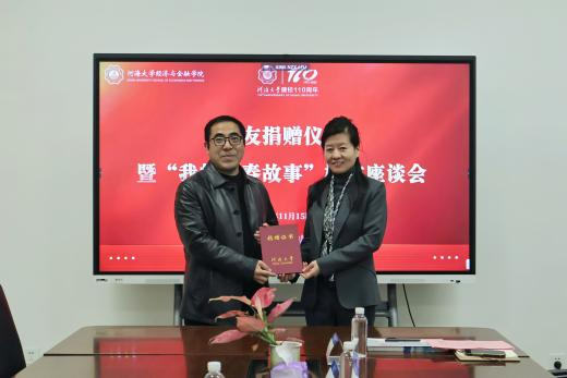 蒋涵校友回顾了他从新疆远赴江苏求学,在国家创业政策与学校支持下在校创业的经历。他表示,学校和老师给予的充分包容是他能够兼顾创业与学业的关键,毕业近10年,他始终心系母校,恰逢学校百十校庆,他希望通过捐赠的形式帮助学院搭建校内创业平台,为学生提供创新创业资金扶持,同时在未来进一步持续深化校企合作,打通学校与新疆的交流通道,助力人才培养与毕业生输送。