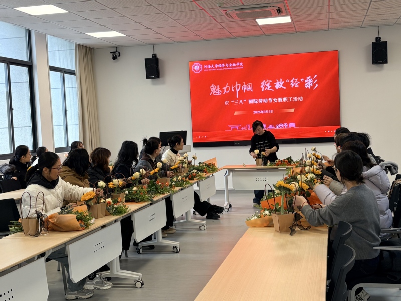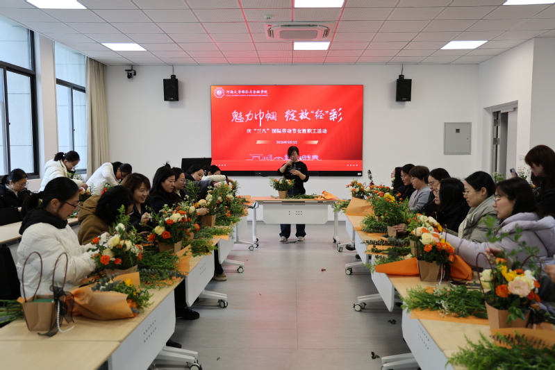 为庆祝2026年“三八”国际劳动妇女节,丰富女教职工精神文化生活,凝聚巾帼力量,增强学院向心力与凝聚力,3月3日,88858cc永利工会在常州校区33号楼304室举办举办“魅力巾帼,绽放‘经’彩”庆“三八”国际劳动妇女节女教职工活动,全院教职工欢聚一堂,共赴这场与美好相伴的花艺之约,在指尖生花中感受生活之美,在交流互动中凝聚奋进力量。